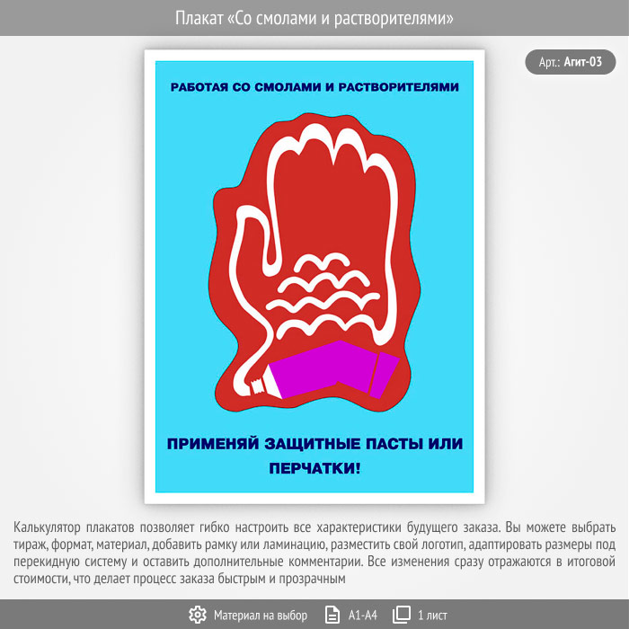 Плакат «Со смолами и растворителями» (Агит-03, 1 лист) в Иркутске купить
