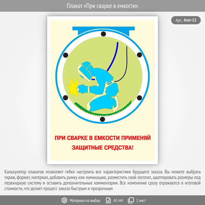Плакат «При сварке в емкости» (Агит-13, 1 лист) в Иркутске купить