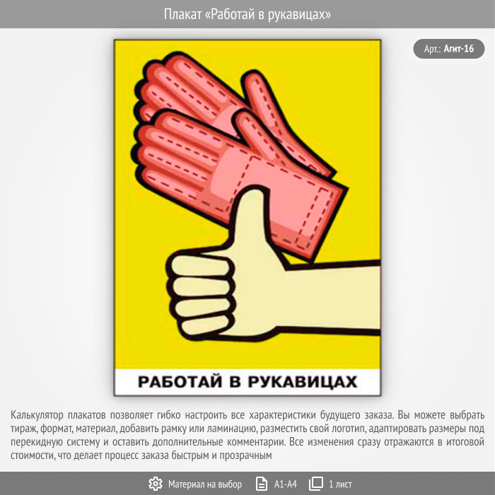 Плакат «Работай в рукавицах» (Агит-16, 1 лист) в Иркутске купить
