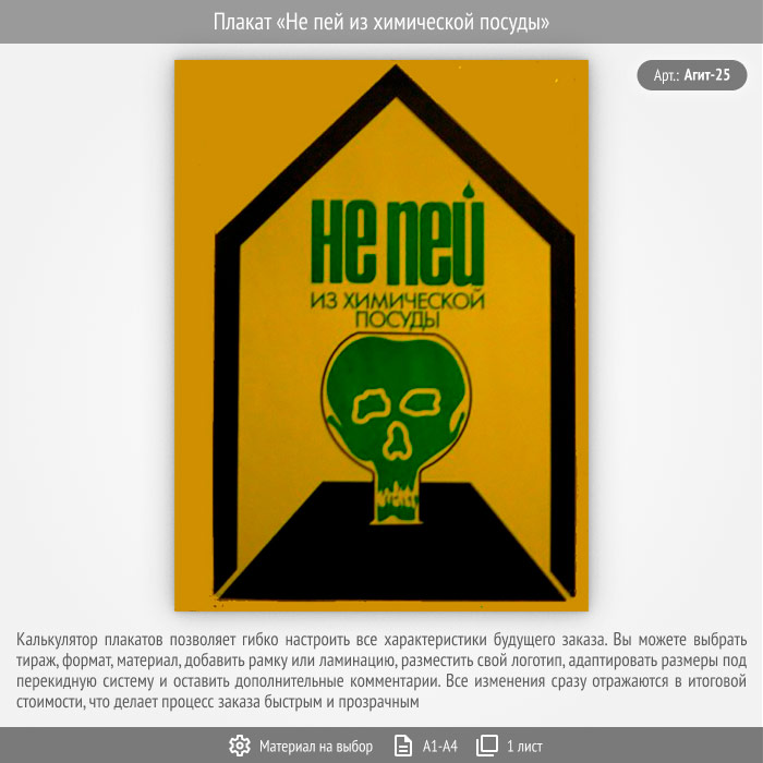Плакат «Не пей из химической посуды» (Агит-25, 1 лист) в Иркутске купить