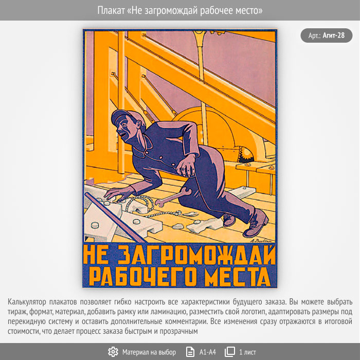 Плакат «Не загромождай рабочее место» (Агит-28, 1 лист) в Иркутске купить