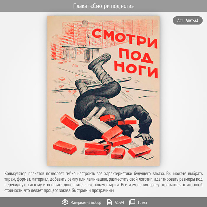Плакат «Смотри под ноги» (Агит-32, 1 лист) в Иркутске купить