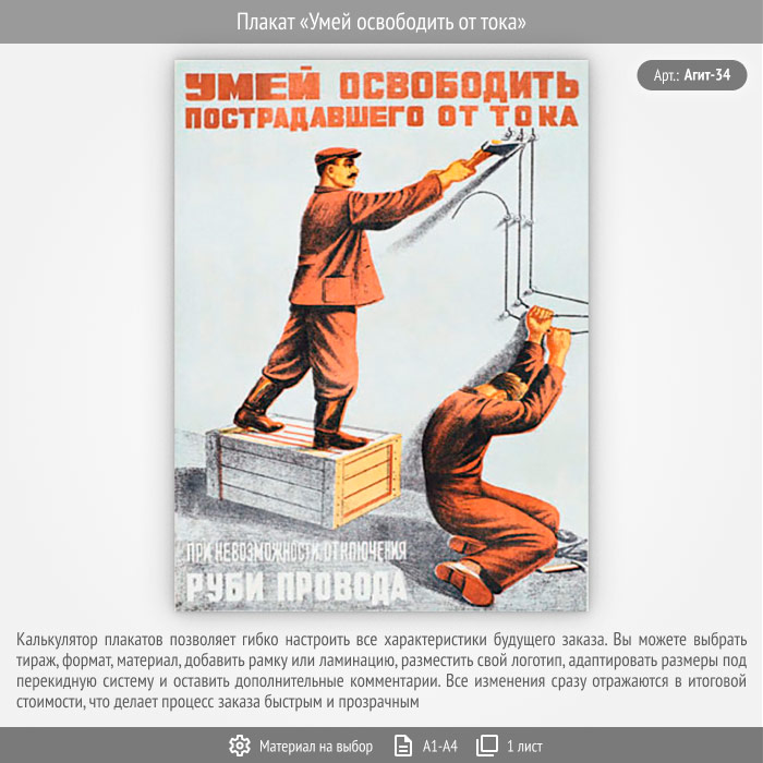 Плакат «Умей освободить от тока» (Агит-34, 1 лист) в Иркутске купить