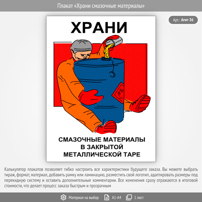 Плакат «Храни смазочные материалы» (Агит-36, 1 лист) в Иркутске купить