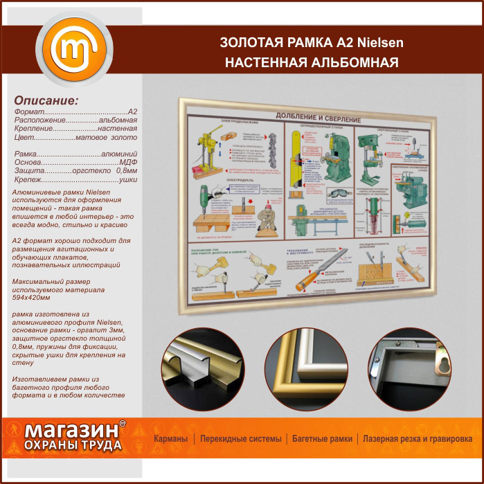 Багетная настенная рамка «Nielsen» А2 формата, альбомная, матовое золото в Иркутске купить