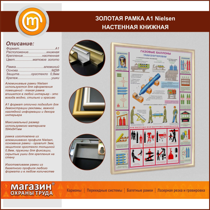 Багетная настенная рамка «Nielsen» А1 формата, книжная, матовое золото в Иркутске купить