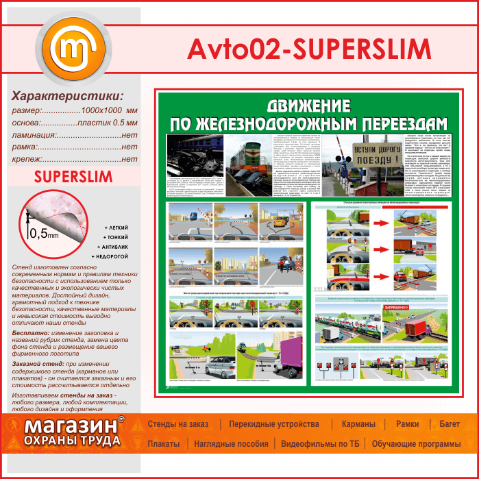 Стенд «Движение по железнодорожным переездам» (AV-02-SUPERSLIM) в Иркутске купить