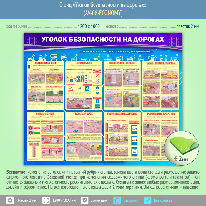 Стенд «Уголок безопасности на дорогах» (AV-06-ECONOMY) в Иркутске купить