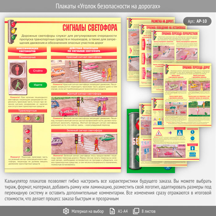 Плакаты «Уголок безопасности на дорогах» (АР-10, 8 листов) в Иркутске купить