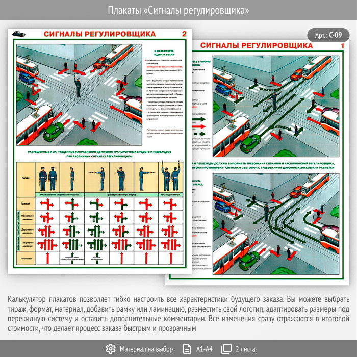 Плакаты «Сигналы регулировщика» (С-09, 2 листа) в Иркутске купить