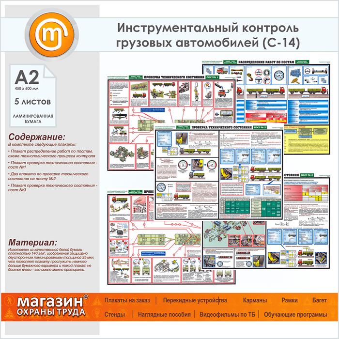 Плакаты «Инструментальный контроль грузовых автомобилей» (С-14, ламинированная бумага, А2, 5 листов) в Иркутске купить