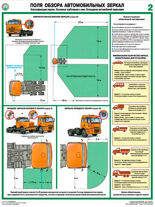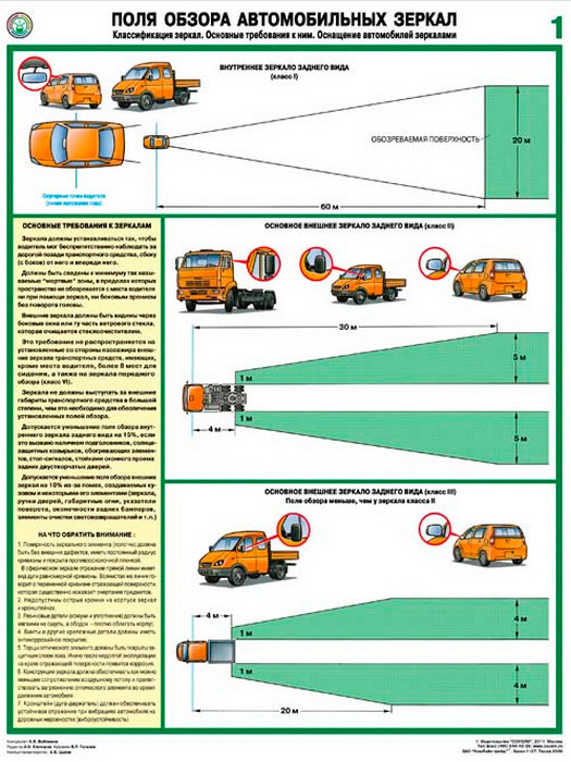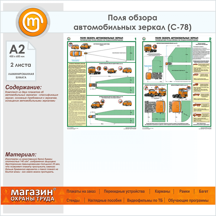 Плакаты «Поля обзора автомобильных зеркал» (С-78, ламинированная бумага, А2, 2 листа) в Иркутске купить