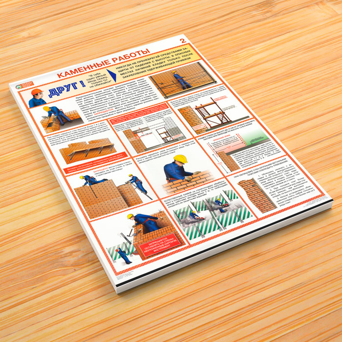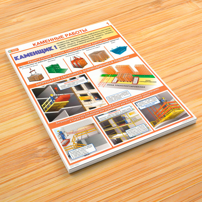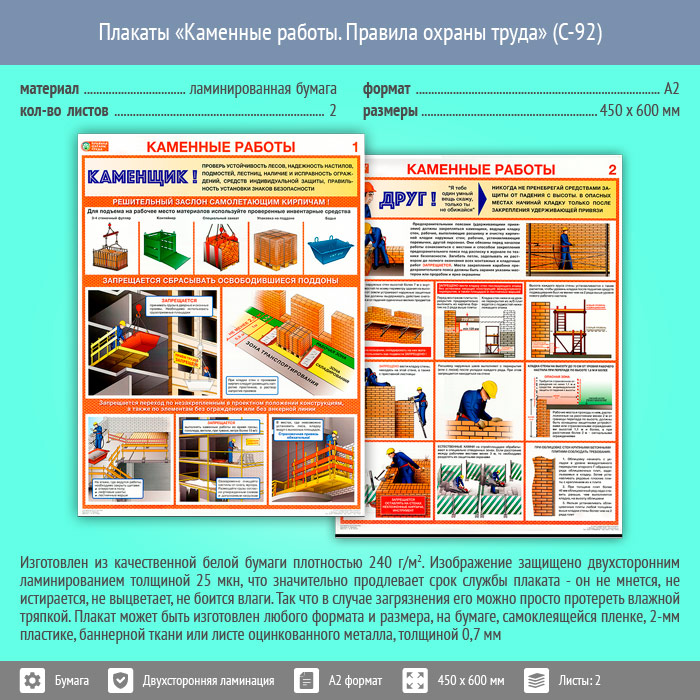 Плакаты «Каменные работы. Правила охраны труда» (С-92, ламинированная бумага, А2, 2 листа) в Иркутске купить
