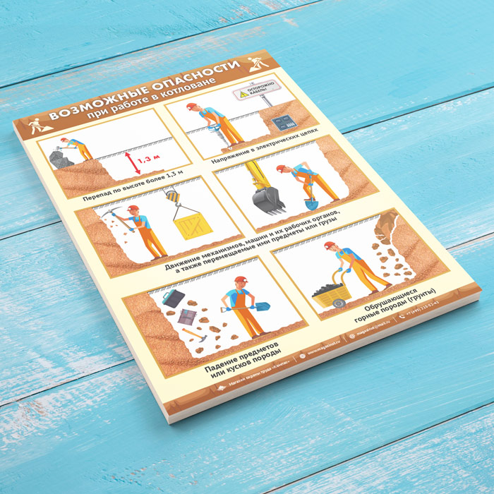 Плакат «Возможные опасности при работе в траншеях и котлованах» (М-113, ламинированная бумага, А2, 1 лист) в Иркутске купить