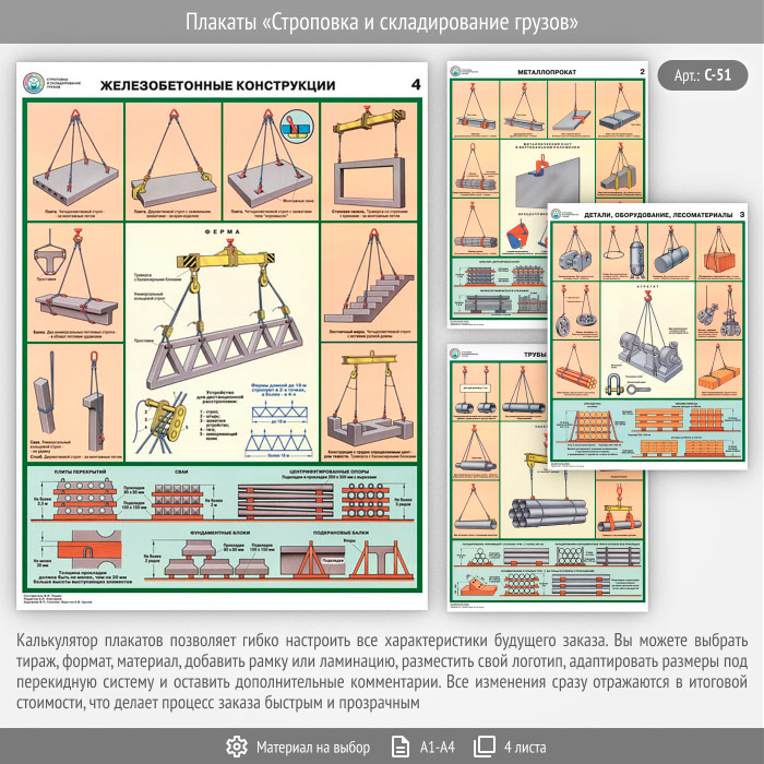 Плакаты «Строповка и складирование грузов» (С-51, 4 листа) в Иркутске купить