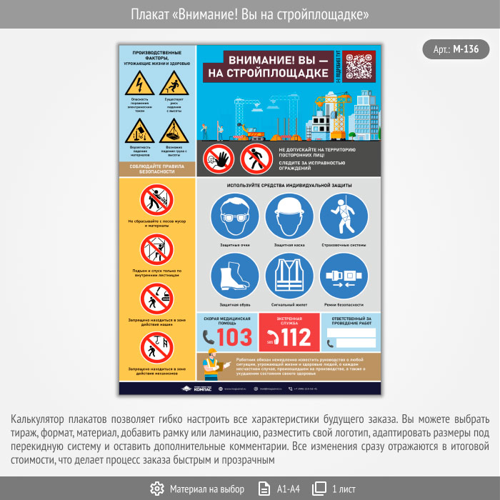 Плакат «Внимание! Вы на стройплощадке» с QR (М-136, 1 лист) в Иркутске купить