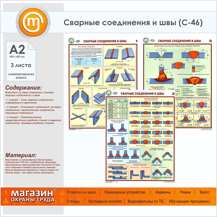 Плакаты «Сварные соединения и швы» (С-46, ламинированная бумага, А2, 3 листа) в Иркутске купить