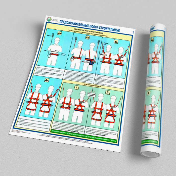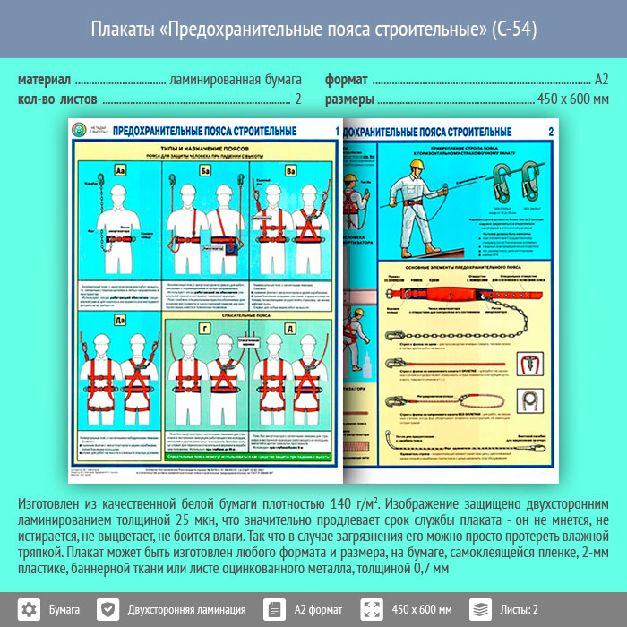 Плакаты «Предохранительные пояса строительные» (С-54, ламинированная бумага, А2, 2 листа) в Иркутске купить