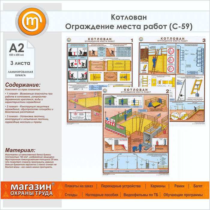 Плакаты «Котлован. Ограждение места работ» (С-59, ламинированная бумага, А2, 3 листа) в Иркутске купить