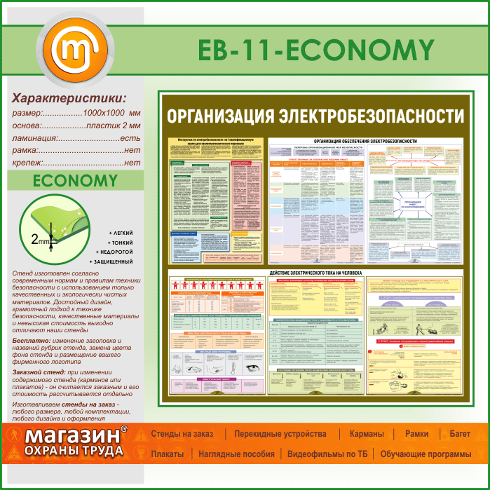 Стенд «Организация электробезопасности» (EB-11-ECONOMY) в Иркутске купить