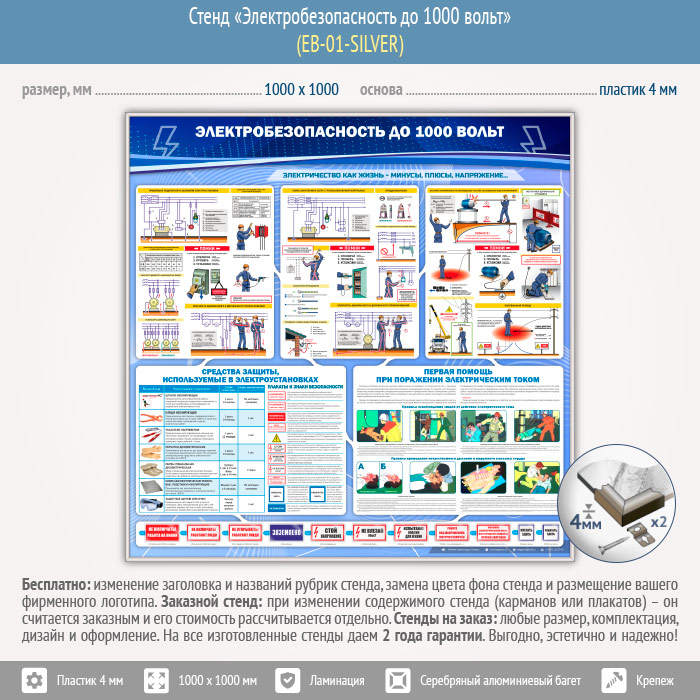 Стенд «Электробезопасность до 1000 вольт» (EB-01-SILVER) в Иркутске купить