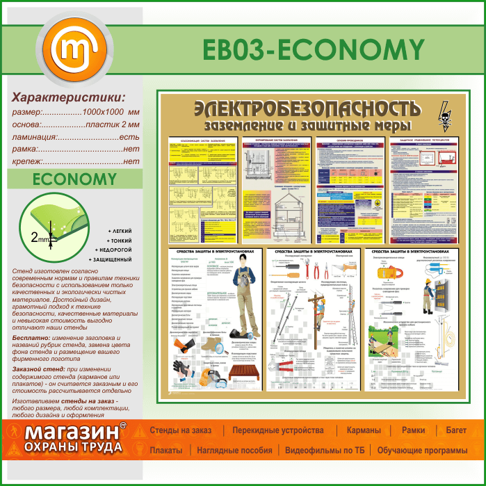 Стенд «Электробезопасность. Заземление и защитные меры» (EB-03-ECONOMY) в Иркутске купить