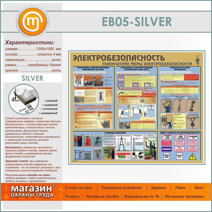 Стенд «Электробезопасность. Технические меры электробезопасности» (EB-05-SILVER) в Иркутске купить