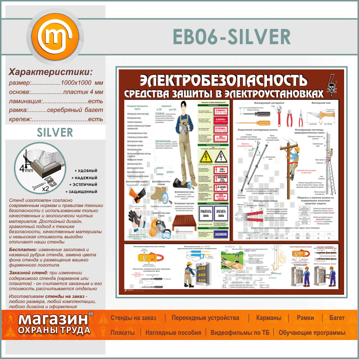Стенд «Электробезопасность. Средства защиты в электроустановках» (EB-06-SILVER) в Иркутске купить