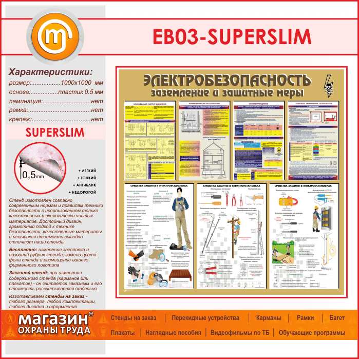 Стенд «Электробезопасность. Заземление и защитные меры» (EB-03-SUPERSLIM) в Иркутске купить