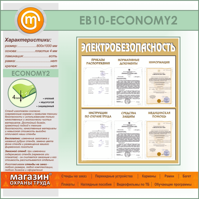 Стенд «Электробезопасность» с 6 карманами (EB-10-ECONOMY2) в Иркутске купить