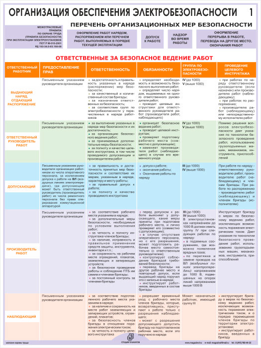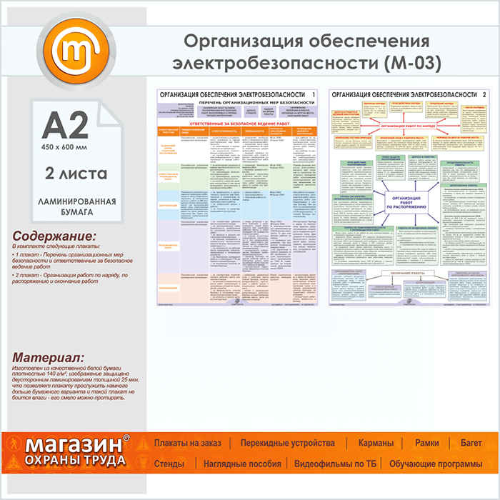 Плакаты «Организация обеспечения электробезопасности» (М-03, ламинированная бумага, А2, 2 листа) в Иркутске купить