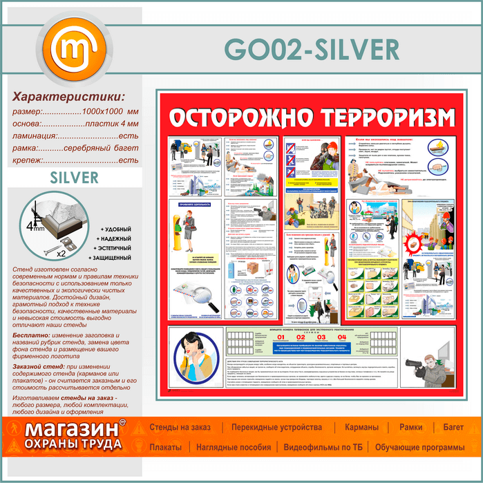 Стенд «Осторожно терроризм!» (GO-02-SILVER) в Иркутске купить
