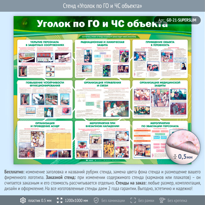 Стенд «Уголок по ГО и ЧС объекта» (GO-21-SUPERSLIM) в Иркутске купить