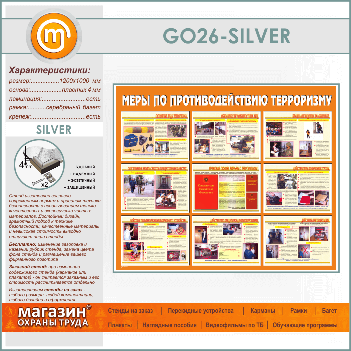 Стенд «Меры по противодействию терроризму» (GO-26-SILVER) в Иркутске купить