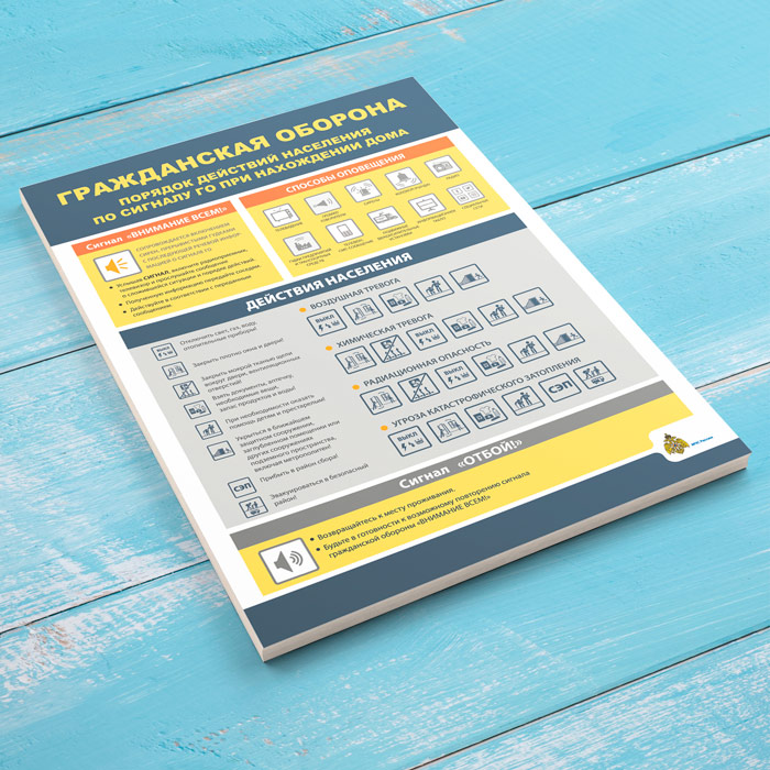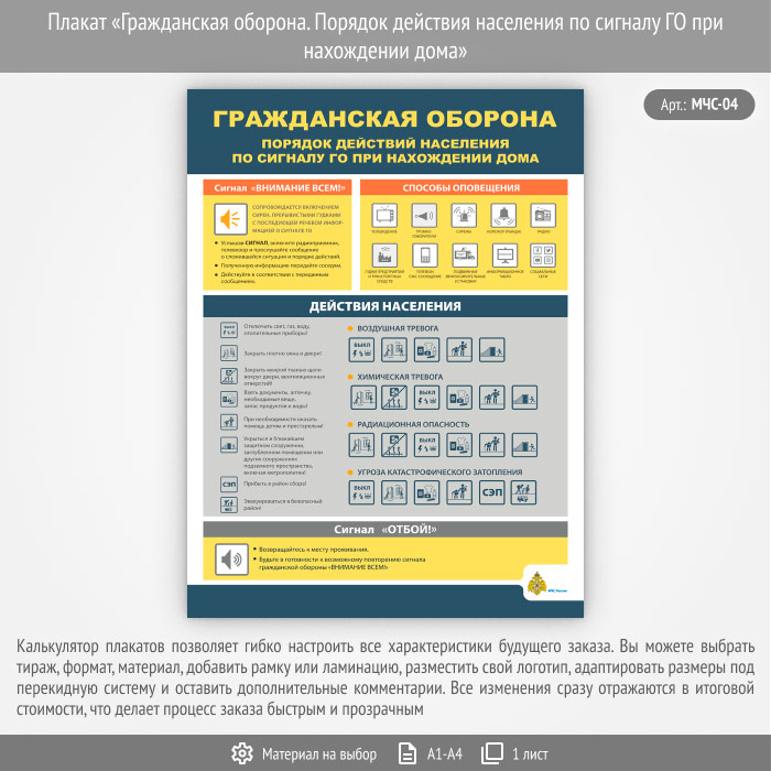 Плакат «Гражданская оборона. Порядок действия населения по сигналу ГО при нахождении дома» (МЧС-04, 1 лист) в Иркутске купить