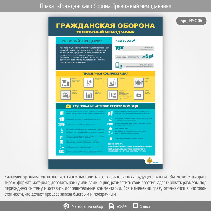 Плакат «Гражданская оборона. Тревожный чемоданчик» (МЧС-06, 1 лист) в Иркутске купить