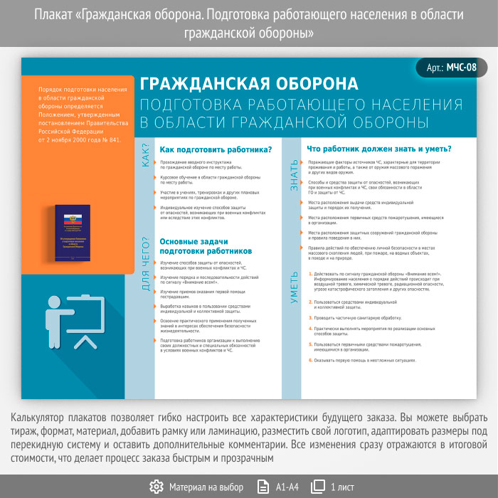 Плакат «Гражданская оборона. Подготовка работающего населения в области гражданской обороны» (МЧС-08, 1 лист) в Иркутске купить