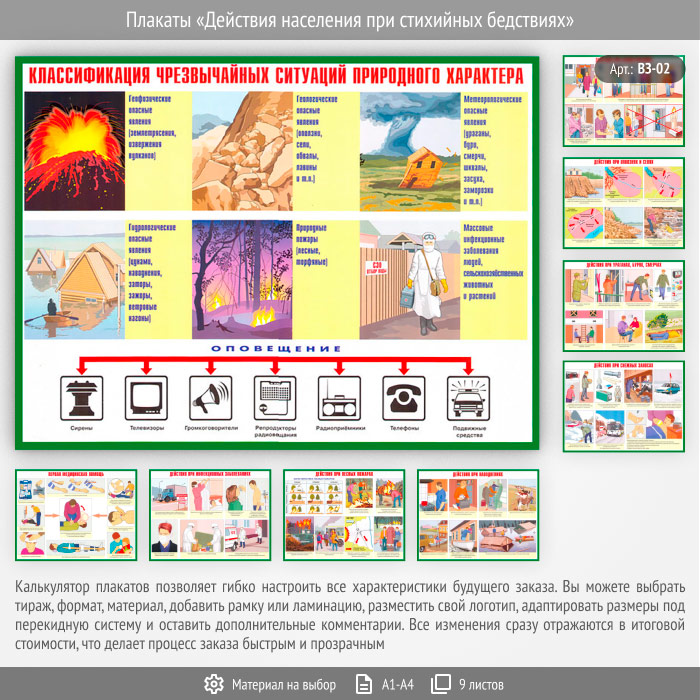 Плакаты «Действия населения при стихийных бедствиях» (ВЗ-02, 9 листов) в Иркутске купить