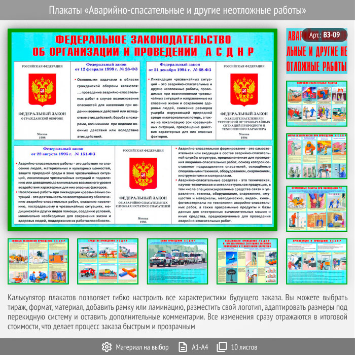 Плакаты «Аварийно-спасательные и другие неотложные работы» (ВЗ-09, 9 листов) в Иркутске купить