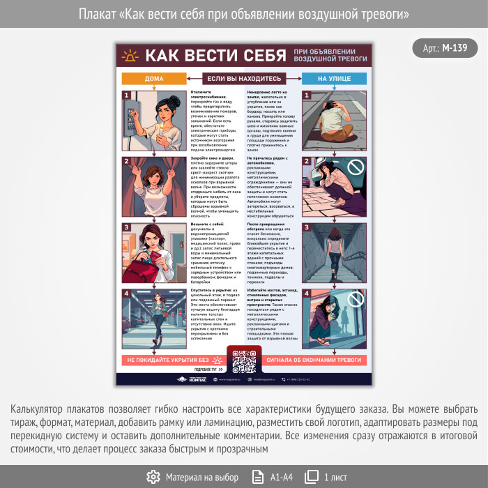 Плакат «Как вести себя при объявлении воздушной тревоги» с QR (М-139, 1 лист) в Иркутске купить
