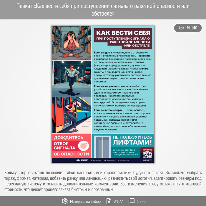 Плакат «Как вести себя при поступлении сигнала о ракетной опасности или обстреле» с QR (М-140, 1 лист) в Иркутске купить