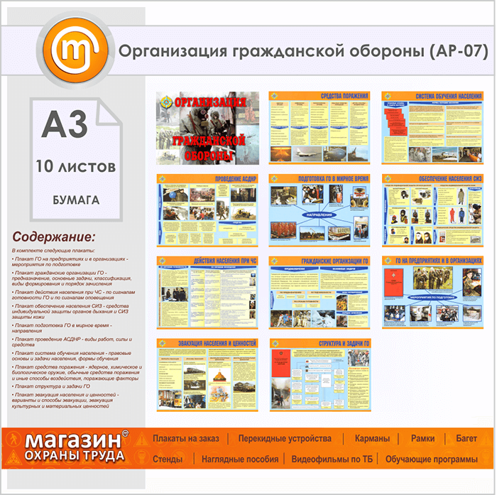 Плакаты «Организация гражданской обороны» (АР-07, бумага, А3, 10 листов) в Иркутске купить