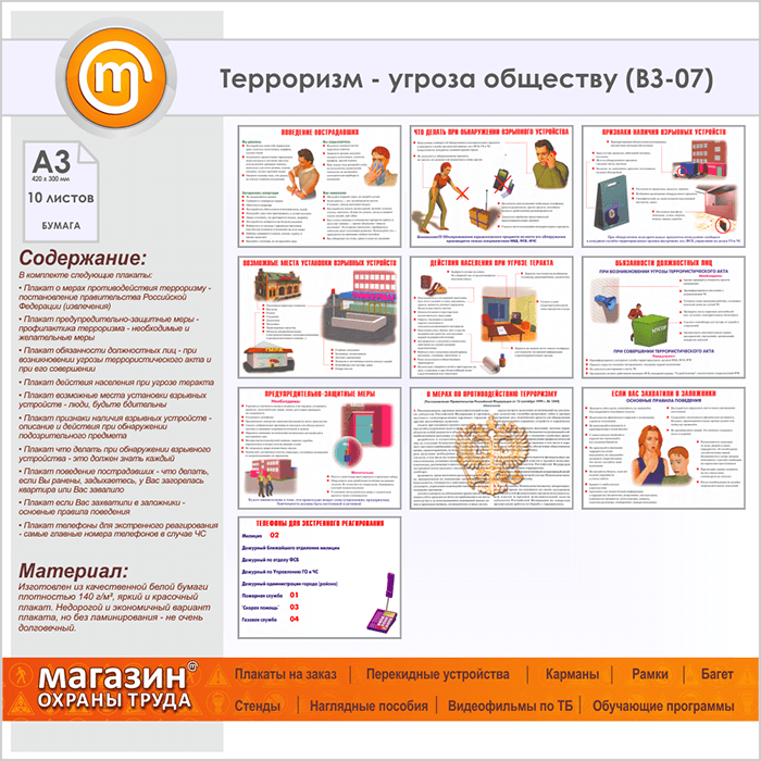 Плакаты «Терроризм - угроза обществу» (ВЗ-07, бумага, А3, 10 листов) в Иркутске купить