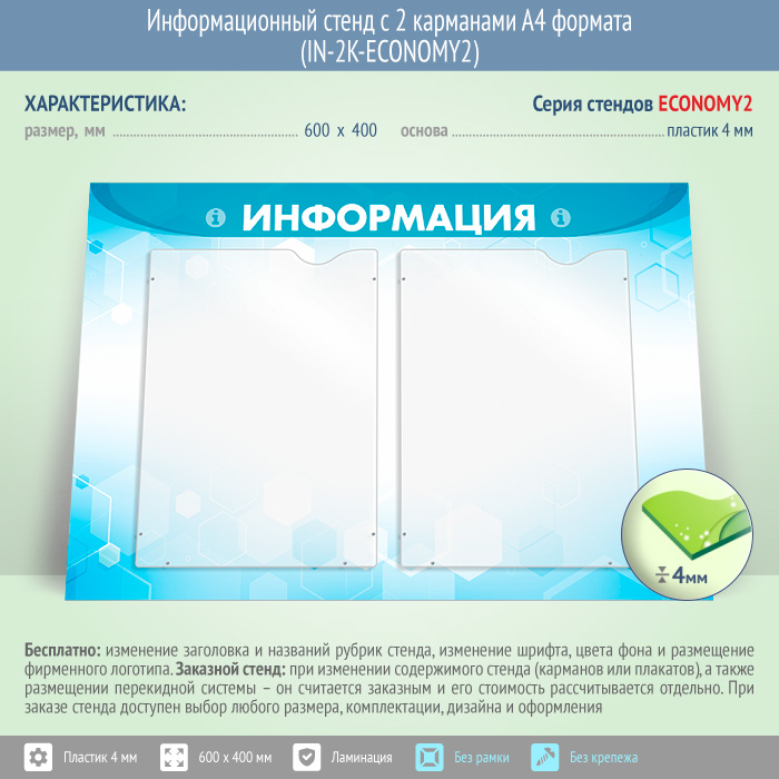 Информационный стенд с 2 карманами А4 формата (IN-2K-ECONOMY2) в Иркутске купить