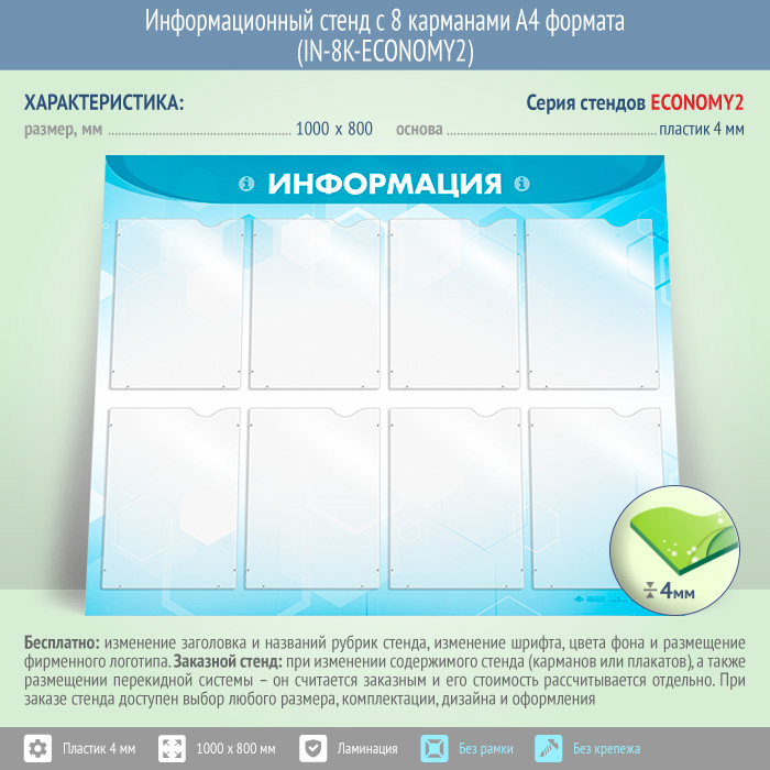 Информационный стенд с 8 карманами А4 формата (IN-8K-ECONOMY2) в Иркутске купить