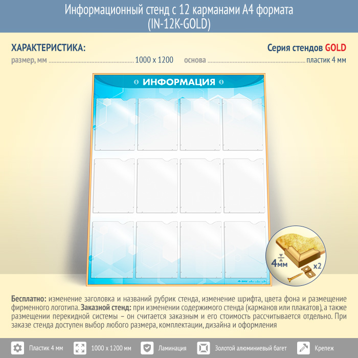 Информационный стенд с 12 карманами А4 формата (IN-12K-GOLD) в Иркутске купить