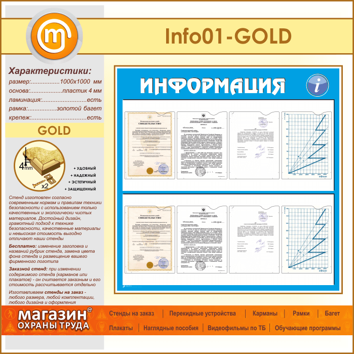 Стенд «Информация» с 8 карманами А4 формата (IN-01-GOLD) в Иркутске купить