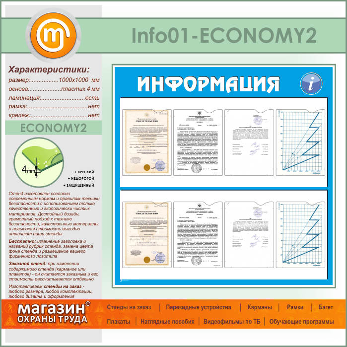 Стенд «Информация» с 8 карманами А4 формата (IN-01-ECONOMY2) в Иркутске купить