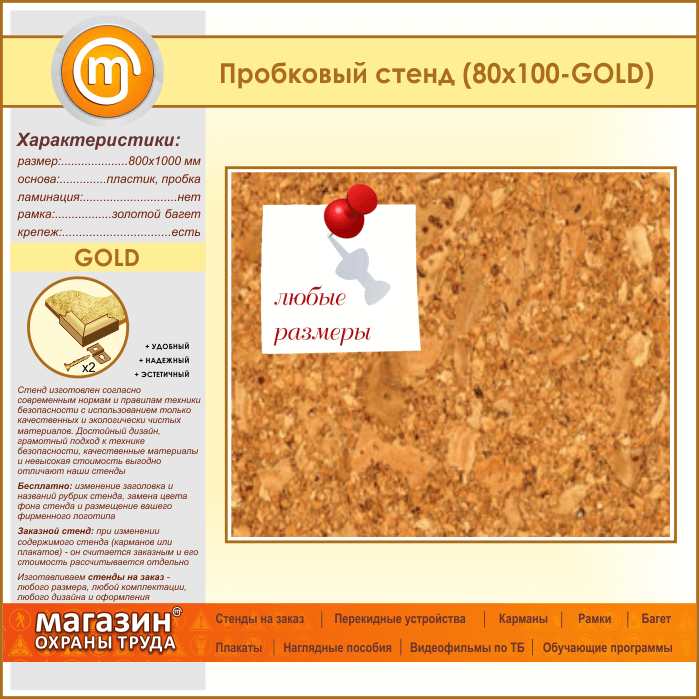Пробковая доска, 100х80 см (IN-05-GOLD) в Иркутске купить