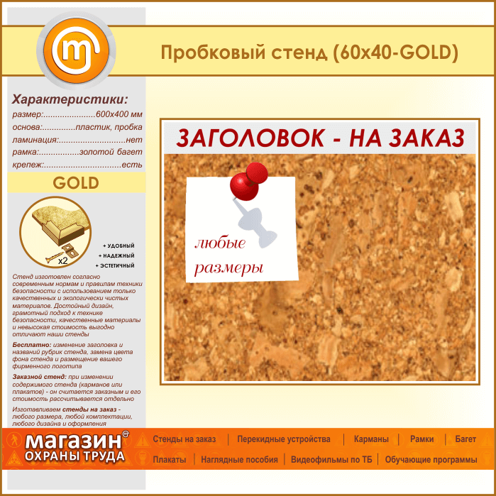 Пробковая доска с заголовком, 60х40 см (IN-06-GOLD) в Иркутске купить